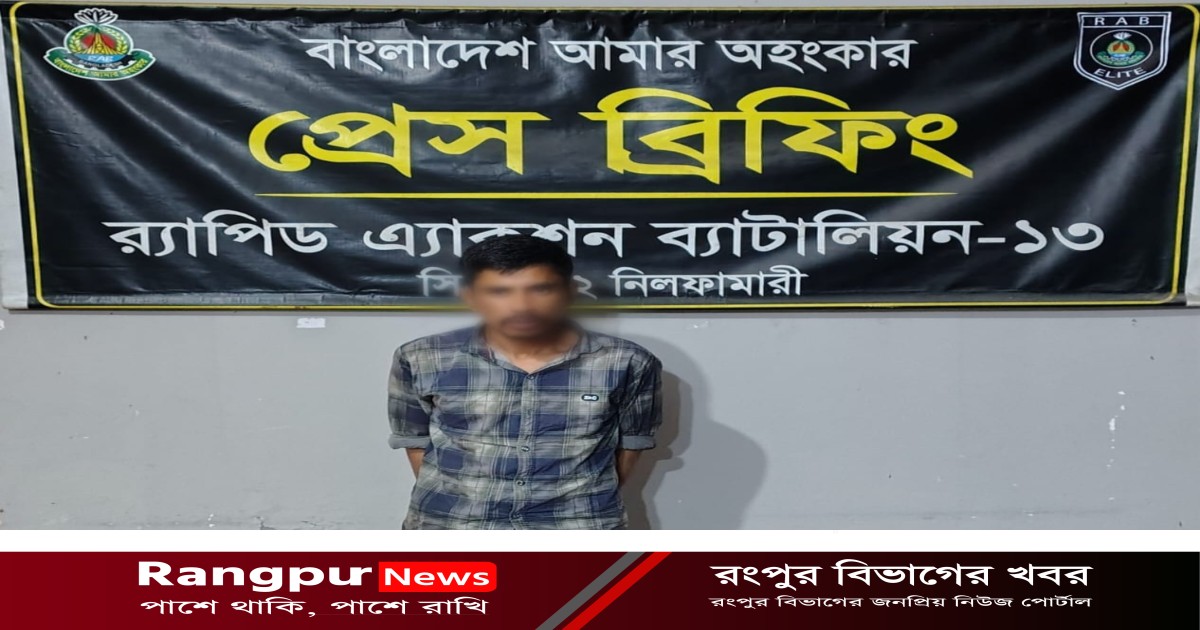 রোববার (১৫ মার্চ) সন্ধ্যায় নীলফামারীতে র্যাব-১৩, সিপিসি-২ এর কার্যালয়ে আয়োজিত সংবাদ সম্মেলনে এ তথ্য জানান সিপিসি-২ এর কোম্পানি কমান্ডার মো. আশরাফুল কবির। গ্রেপ্তার ব্যক্তি আনোয়ার হোসেন ওরফে নিতাই আনোয়ার (৪০)। তিনি পঞ্চগড়ের দেবীগঞ্জ পৌরসভার চিড়াকুটি এলাকার মৃত হিমায়েদ আলীর ছেলে।