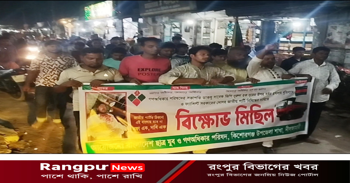 গণঅধিকার পরিষদের সভাপতি ও ডাকসুর সাবেক ভিপি নুরুল হক নুরের উপর হামলার প্রতিবাদে এবং ফ্যাসিস্ট সরকারের দোসর জাতীয় পার্টিকে নিষিদ্ধের দাবিতে নীলফামারীর কিশোরগঞ্জ উপজেলায় বিক্ষোভ মিছিল করেছে ছাত্র, যুব ও গণঅধিকার পরিষদ।