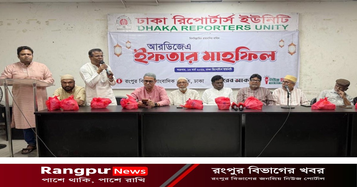 রংপুর বিভাগ সাংবাদিক সমিতি ঢাকার (আরডিজেএ) উদ্যোগে ইফতার ও দোয়া মাহফিল অনুষ্ঠিত হয়েছে। রাজধানীর সেগুন বাগিচায় ঢাকা রিপোর্টার্স ইউনিটির (ডিআরইউ) শফিকুল কবির মিলনায়তনে এ ইফতার মাহফিলের আয়োজন করা হয়।