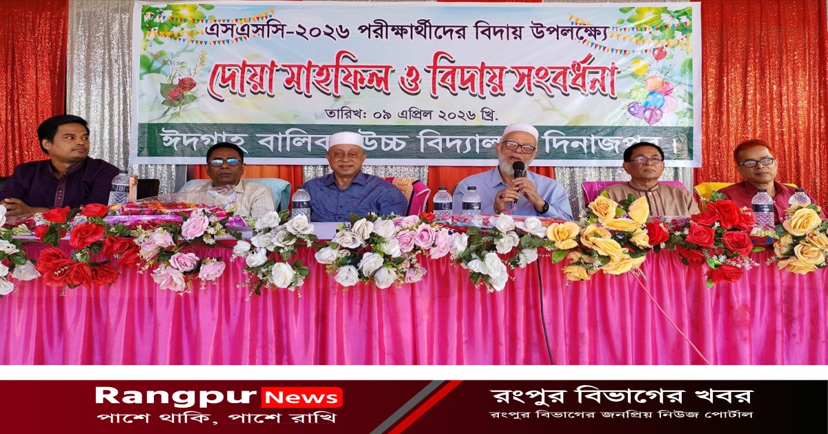 দিনাজপুরে ঈদগাহ বালিকা উচ্চ বিদ্যালয়ে এসএসসি ২০২৬ পরিক্ষার্থীদের বিদায় উপলক্ষে দোয়া মাহফিল ও বিদায় সংবর্ধনা অনুষ্ঠিত হয়েছে।