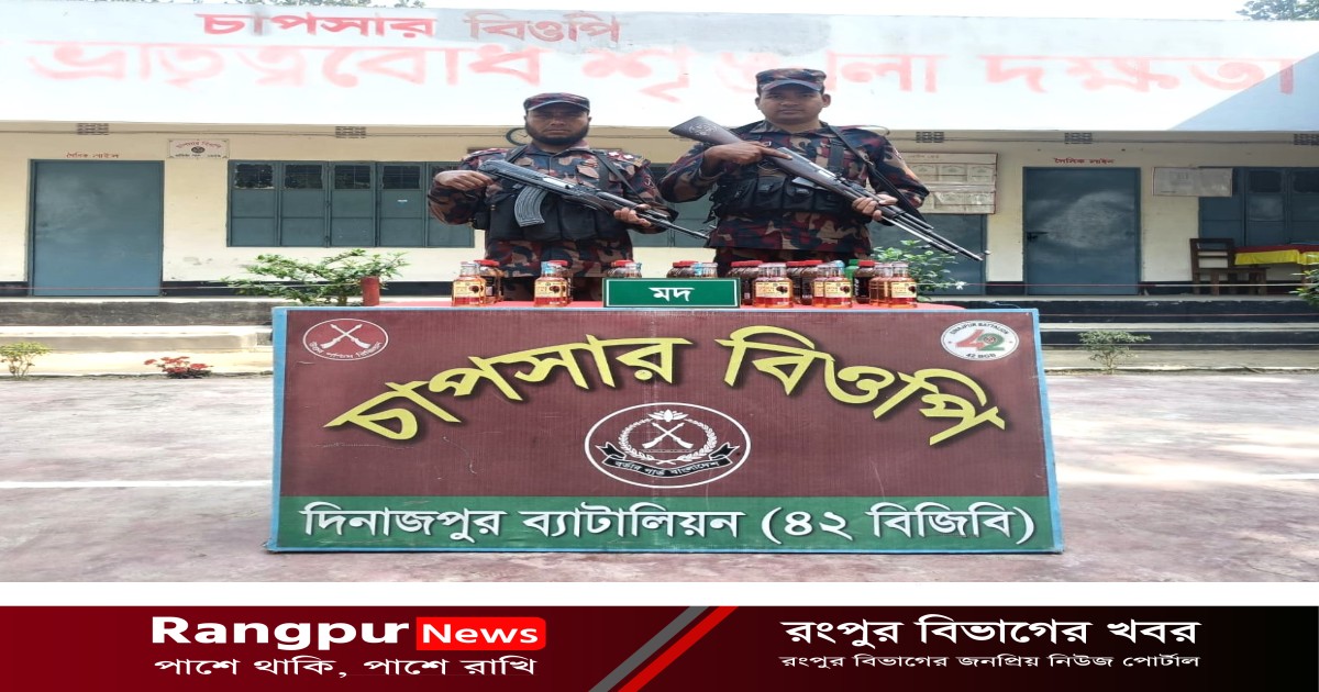 গত ২ মার্চ রাত ১০টা ৩০ মিনিটে চাপসার বিওপি’র একটি টহল দল গোপালপুর এলাকায় অভিযান চালায়। সীমান্ত পিলার ৩৪৬/১৬-আর থেকে প্রায় ৫০০ গজ বাংলাদেশের অভ্যন্তরে মালিকবিহীন অবস্থায় ১৫ বোতল ভারতীয় মদ ও ২৫ লিটার দেশীয় মদ উদ্ধার করা হয়। উদ্ধারকৃত মাদকের সিজার মূল্য আনুমানিক ৩০ হাজার টাকা।