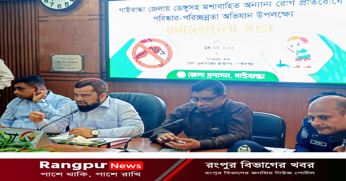 ডেঙ্গুসহ মশাবাহিত বিভিন্ন রোগ প্রতিরোধে সচেতনতা বৃদ্ধি ও পরিষ্কার-পরিচ্ছন্নতা নিশ্চিত করতে গাইবান্ধায় বর্ণাঢ্য র্যালি ও আলোচনা সভা অনুষ্ঠিত হয়েছে।