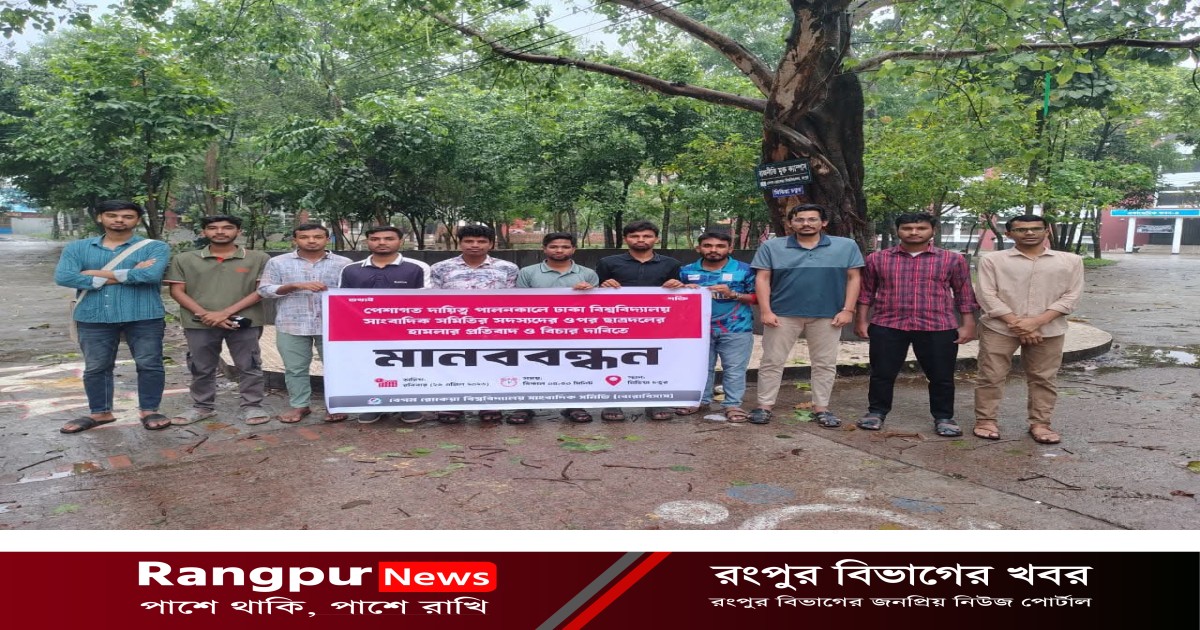 ঢাবিতে সাংবাদিকদের ওপর হামলার ঘটনায় দোষীদের শাস্তি দাবিতে বেরোবিতে মানববন্ধন
