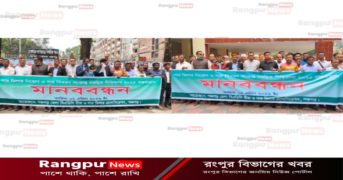 সার ডিলার নিয়োগ ও সার বিতরণ নীতিমালা বাস্তবায়নের দাবিতে পঞ্চগড়ে মানববন্ধন