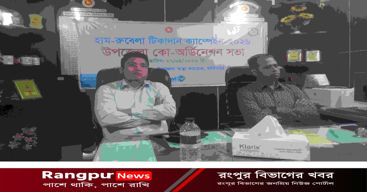 দিনাজপুরের হাকিমপুর উপজেলায় হাম-রুবেলা টিকাদান ক্যাম্পেইন-২০২৬ সফল বাস্তবায়নের লক্ষ্যে এক কো-অর্ডিনেটর সভা অনুষ্ঠিত হয়েছে। সোমবার (২৭ এপ্রিল) দুপুর ১২টায় উপজেলা স্বাস্থ্য কমপ্লেক্সের হলরুমে এ সভা অনুষ্ঠিত হয়।