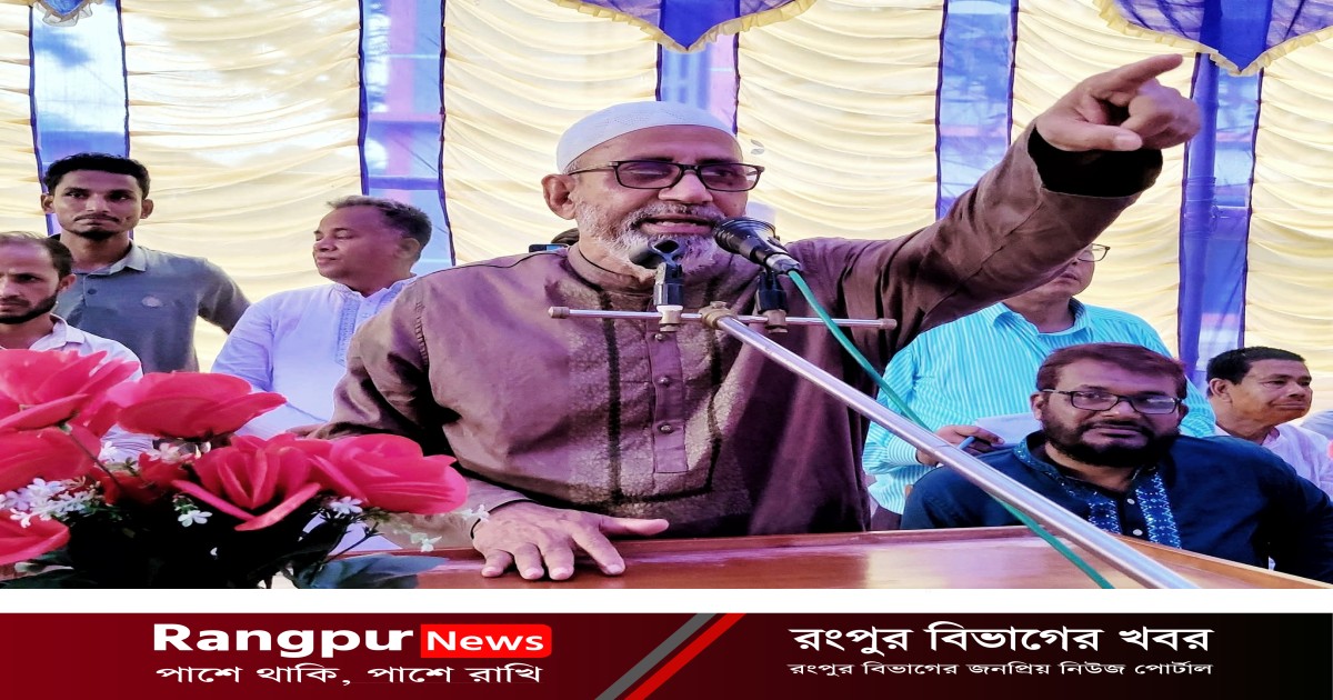 ছবির ক্যাপশন: দিনাজপুরের খানসামার পাকেরহাট সরকারি ডিগ্রি কলেজ মাঠে মতবিনিময় সভায় প্রধান অতিথি হিসেবে বক্তব্য রাখছেন জাতীয় সংসদের হুইপ মো. আখতারুজ্জামান মিয়া।