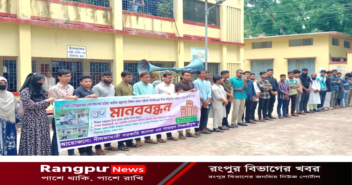 কুমিল্লায় শিক্ষকের ওপর হামলার প্রতিবাদে নীলফামারীতে মানববন্ধন