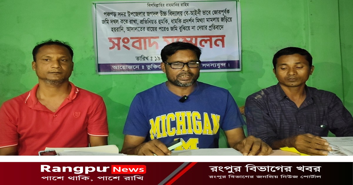 পঞ্চগড় সদর উপজেলার জগদল এলাকায় জমি দখল, হুমকি-ধামকি ও আদালতের রায় অমান্যের অভিযোগে সংবাদ সম্মেলন করেছেন ভুক্তভোগী পরিবারের সদস্যরা।