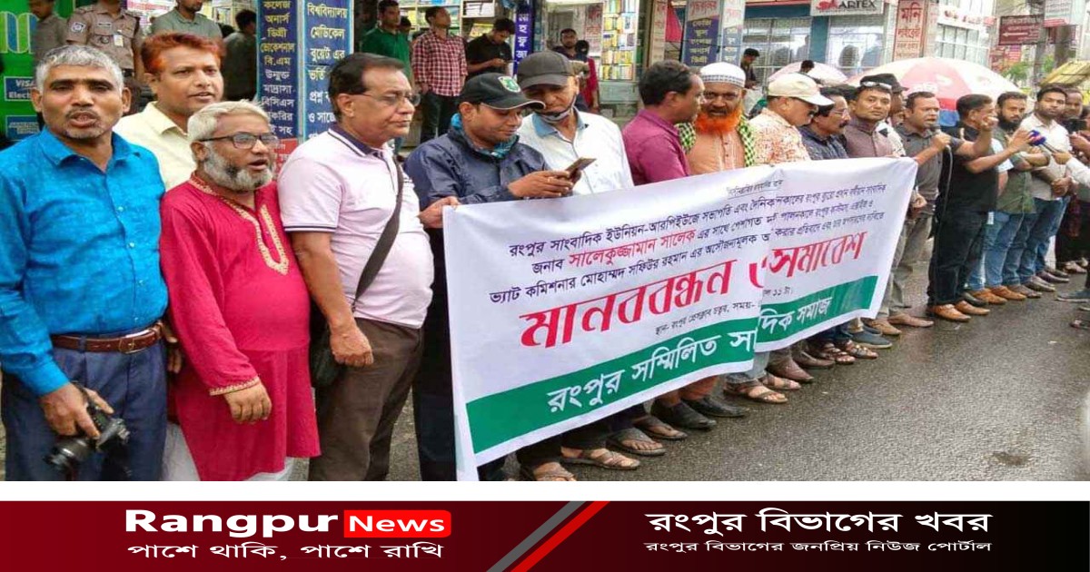 বক্তারা বলেন, সম্প্রতি রংপুরের কাস্টমস ও ভ্যাট কমিশনার মো. সফিউর রহমানের নেতৃত্বে বিএনপির হাইকমান্ডের নাম ভাঙিয়ে নানা অনৈতিক কর্মকাণ্ডে লিপ্ত হয়েছেন কাস্টমস কর্মকর্তারা। এ সকল কর্মকর্তার বিরুদ্ধে গণমাধমে খবর প্রকাশিত হওয়ায় তারা গণমাধ্যম কর্মীদের ওপর ক্ষিপ্ত হয়ে উঠেছেন। এরই জের ধরে গত ২৩ এপ্রিল রংপুর চেম্বার অব কর্মাস অ্যান্ড ইন্ডাস্ট্রিজ আয়োজিত প্রাক বাজেট অনুষ্ঠানের সংবাদ সংগ্রহ করতে গিয়ে কাস্টমস কমিশনারের রোষানলের শিকার হন সাংবাদিকরা। এরই প্রতিবাদ করতে গিয়ে হেনস্তার শিকার হন রংপুর সাংবাদিক ইউনিয়নের সভাপতি ও দৈনিক দিনকালের সাংবাদিক সালেকুজ্জামান।