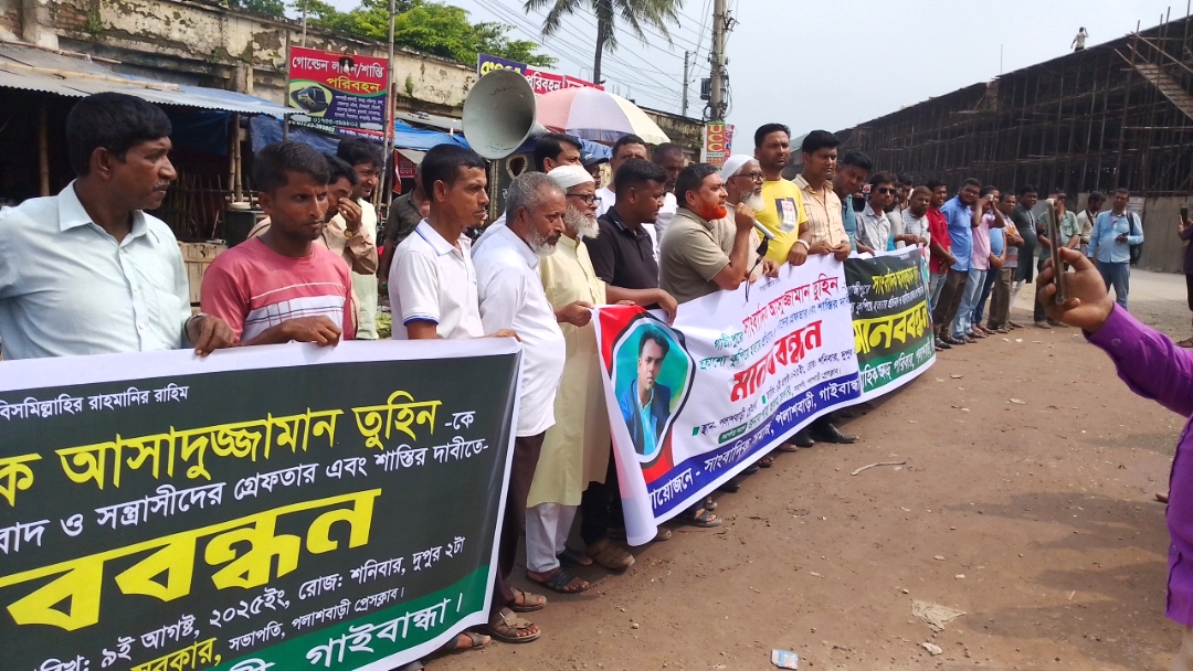 সাংবাদিক তুহিন হত্যার প্রতিবাদে পলাশবাড়ীতে মানববন্ধন